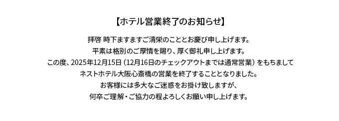 ネストホテル大阪心斎橋(旧チサンホテル心斎橋)大阪府大阪市中央区南船場2-4-10